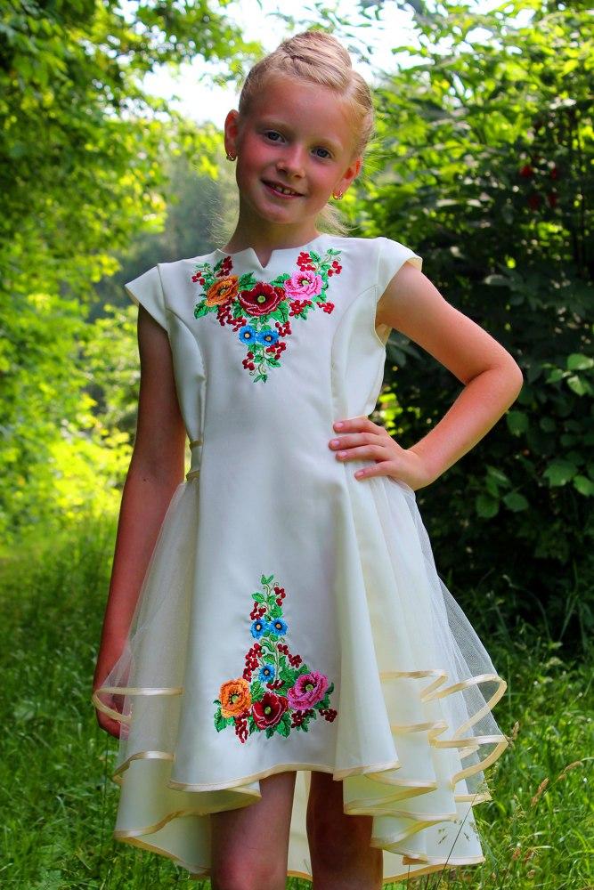Дитяча вишита сукня Мальвіна з вишивкою Діана на кремовому габардині, на спідниці фатин, на 6,7,8,9,10,11,12 років