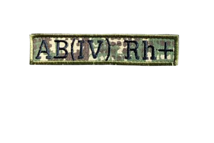 Шеврон планка патч група Крові - Четверта резус Позитивний на липучці, хижак камуфляж Розмір 130×25 мм