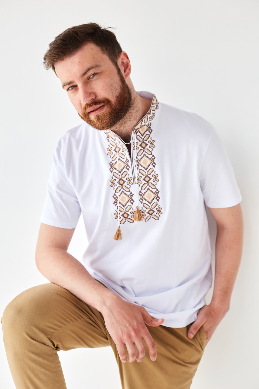 Чоловіча футболка-вишиванка "Гетьман" - елегантне поєднання стилю та традицій! Ця біла трикотажна футболка з вишивкою стане справжньою окрасою вашого гардеробу.